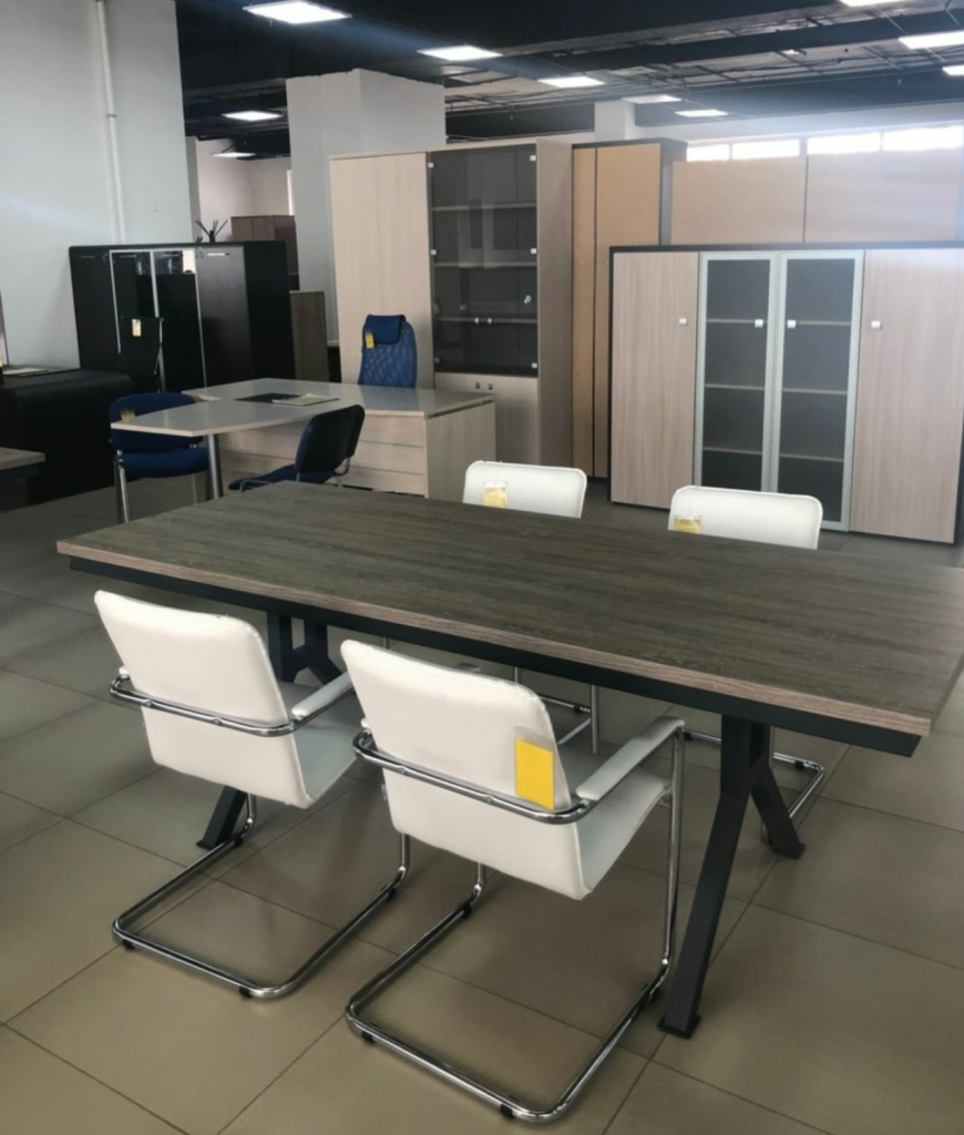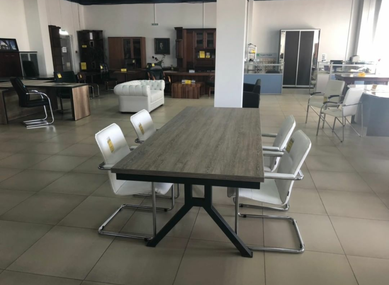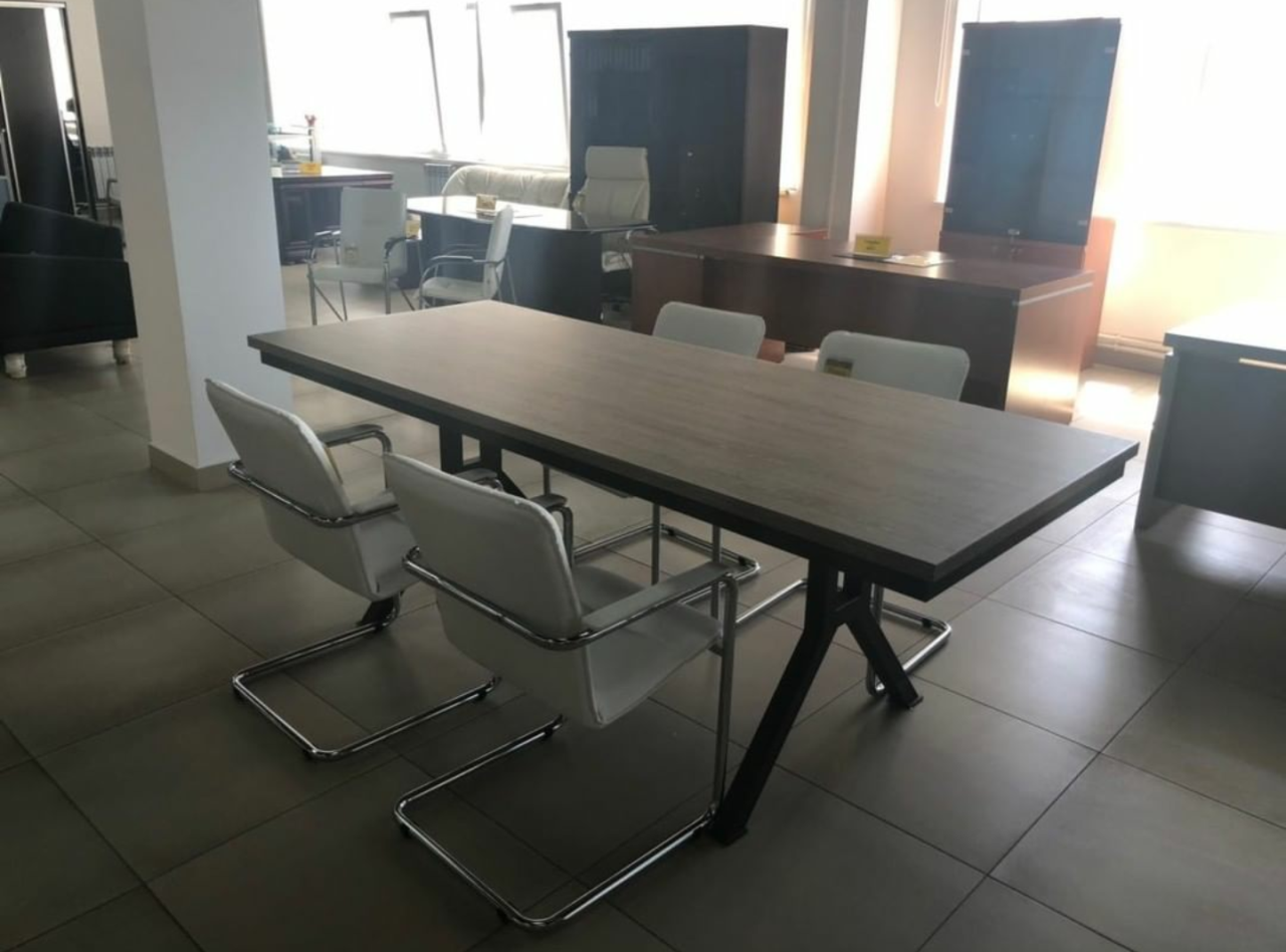 Стильный и изящный стол «Флидвуд» для зоны переговоров на металлокаркасе, разнообразит и дополнит интерьер, подчеркнет рабочую строгость.